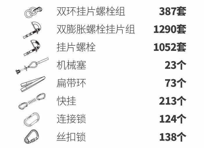 2016年凯乐石寻岩中国共设有六站,分别是重庆、成都、贵阳、西安、呼和浩特和浙江,截至目前为止开线127条,岩线难度从5.7到5.13b不等,KAILAS凯乐石无偿提供大量物资,仅开线器械前五站就已经用了: