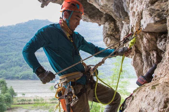 外号「赵四」,岩龄14年,复合型攀登者,凯乐石寻岩团队领队。他总需要背着两个背包,一个是开线的装备,一个是摄影器材,拿起相机的时候是摄影师,举起电锤的时候是苦力,岩壁开线清理的时候是技术员,记录资料、整理发布的时候是文宣,一项工作都没落下,后果就是与其他苦力相较,寻岩期间严重缺觉。