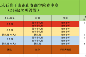 ①100公里个人组、70公里个人组、35公里个人组,每个组别均至少有1名学院 选手(学院以参赛选手报名时填写的学院为标识)参赛;