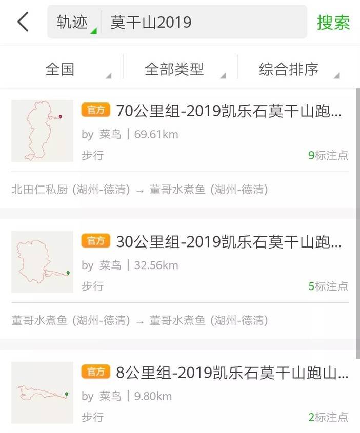 下载“户外助手”app,搜索“莫干山2019”,即可导入赛事最新轨迹。