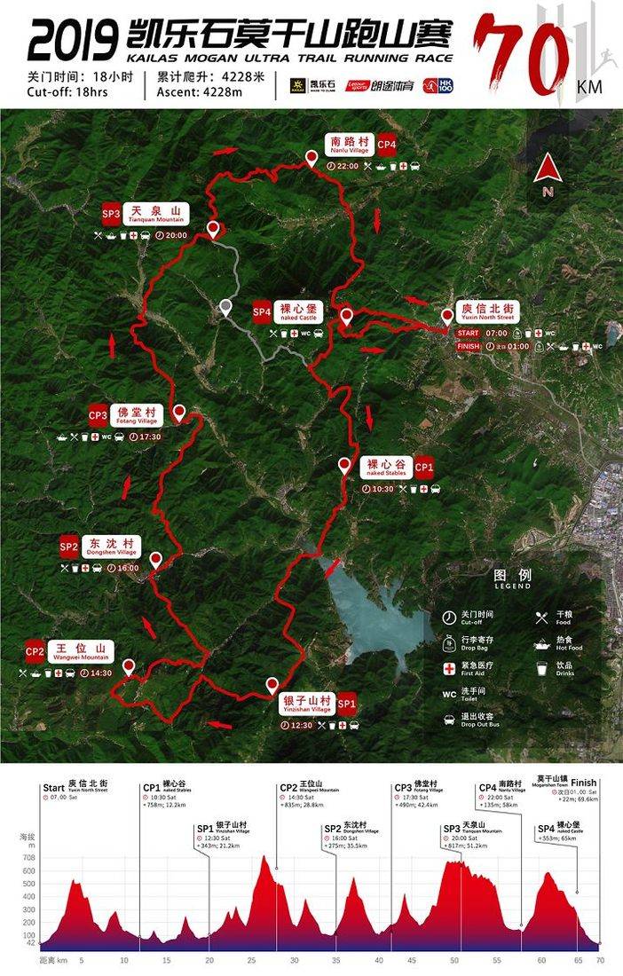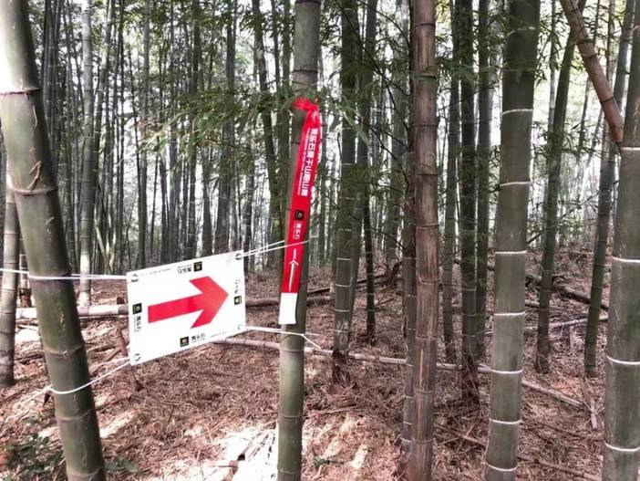 赛道说明:出补给站沿公路1.8KM右前方进入土路,60KM的大树下村横穿马路后右转,注意看路标,沿着小水泥路前进1KM见到水库,不久开始爬2KM到达莫干山庄,在莫干山景区跑3KM到达裸心堡,景区里面游客和岔路口很多,一定要注意看路标,如果20~30米没见到路标,请结合轨迹原路返回找到上一条路标,再观察前进方向。