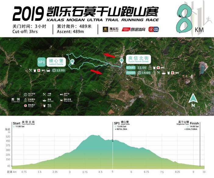赛道说明:800M处的莫干山老车站右转进入于烂线,再前进200米左转沿着右边小路进入登山步道,注意看指示牌和听从“指引志愿者”的指引,1~4KM是由缓至陡的经典登山步道,4KM到达华厅停车场,游客较多,向右下方跑到4.2KM“大路拐小路”进入百步岭,紧接着到达SP1裸心堡。