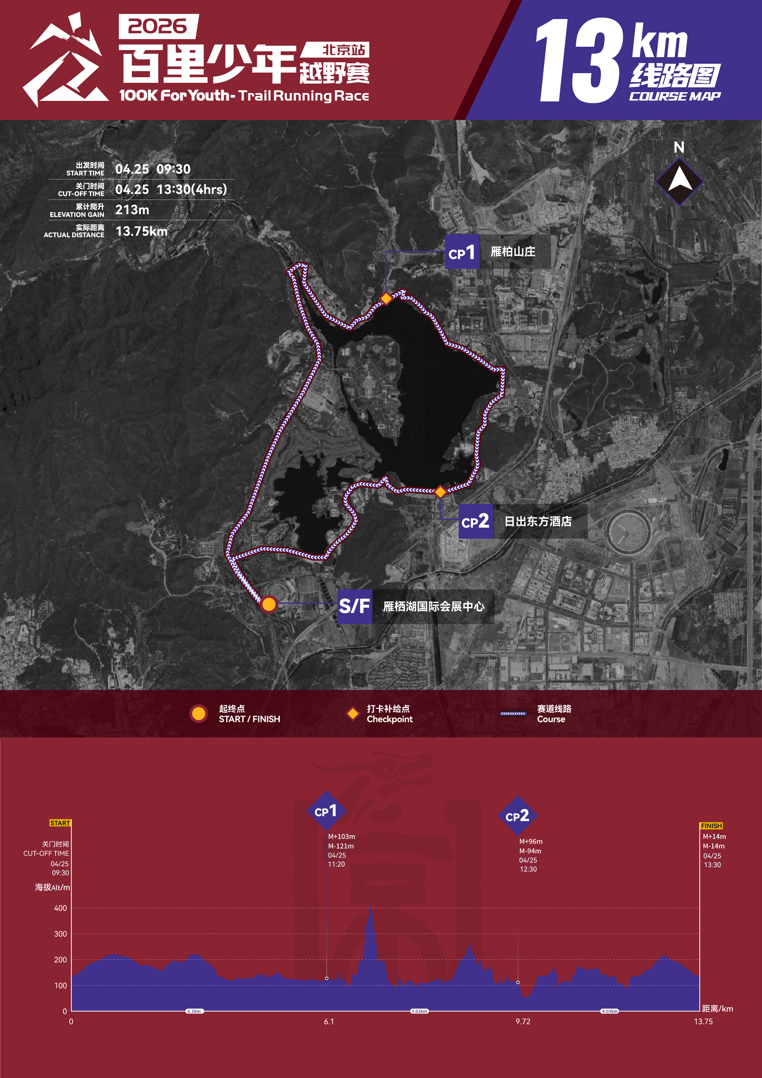 其中:13公里百里少年亲子组设立年龄组排名颁奖;
