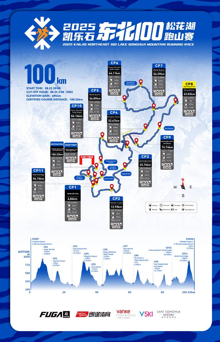 8. Participants who fail to complete the designated course and distance within the cutoff time are considered not to have finished. Upon arrival at the checkpoint (CP) (support points, namely SP, are not cutoff points but have designated closing times), participants must register with staff and follow instructions for safe withdrawal.