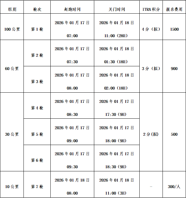 (5)组委会保留调整赛事各个组别赛道、发枪时间、关门时间等的权利。
