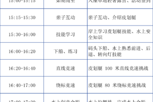 比赛奖励:各组别第一名、第二名、第三名可获得朗途水上中心单次体验券+精美礼品一份。其余参加者完成挑战即可活动精美礼品一份