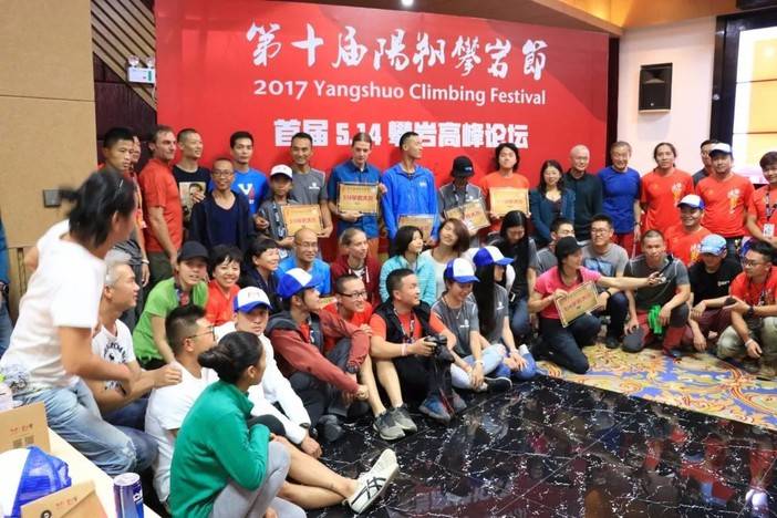 10日的重头戏在首届5.14高峰论坛,阳朔县体育局、旅游局相关领导和媒体朋友、登山界泰斗、中国登山协会重要成员夏伯渝老师、以及在阳朔完成运动攀5.14高难度攀岩线路的攀岩大师及追随者集聚一堂,互相分享与阳朔攀岩相关的故事。