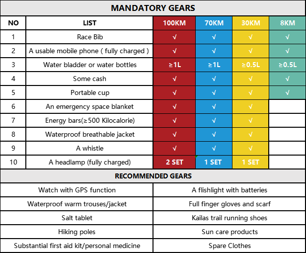 2. Participants are required to be semi self-sufficient. You must have your mandatory equipment with you at all times during the race.