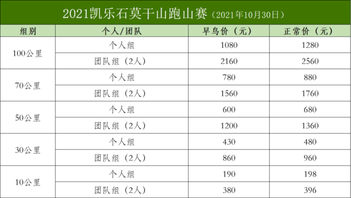 DISTANCE | CATEGORY | EARTLY BIRD(RMB) | NORMAL PRICE(RMB) |