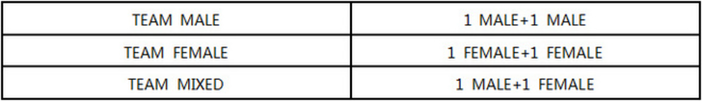 TEAM (2 PERSONS) | TEAM MALE | 840 | 920 |