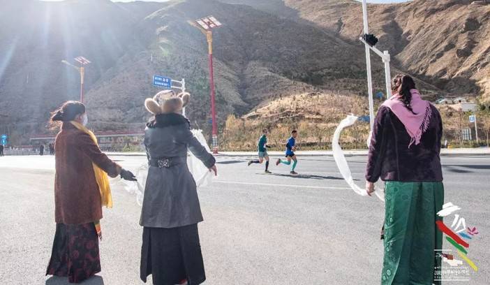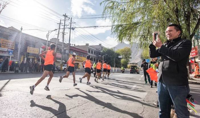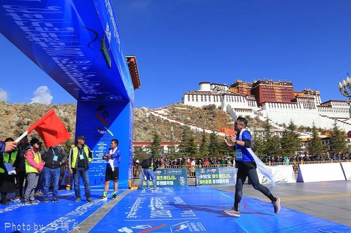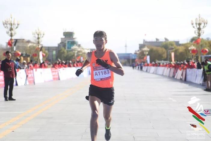 在人山人海的欢呼声中,来自西藏本地的选手多布杰更加快马加鞭,一路飞驰率先冲过终点,斩获了男子半程马拉松冠军。