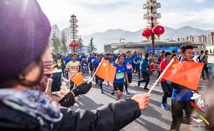 发令枪响后,来自各族各界的跑步爱好者们浩浩荡荡出发,开始了愉快的高原乐跑之旅。沿途,选手们为拉萨市的美景所吸引,更为奔跑在蓝天白云下的感觉而兴奋,纷纷驻足拍照留念。
