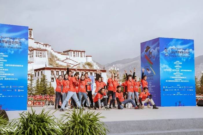 在比赛开幕式上,拉萨市文化局创作的富有西藏文化底蕴的传统节目——蓝面具藏戏,作为欢迎仪式放在一个现代化建筑物前面,体现了传统的一面。相反在布达拉宫广场的终点处,以布达拉宫为背景,颁奖仪式推出的是《幸福拉萨》这样一个非常具有动感和时代特色的街舞。这也是这次半程马拉松赛在起点和终点仪式中的一个特别设计,是传统和现代的融合,非常有特点。