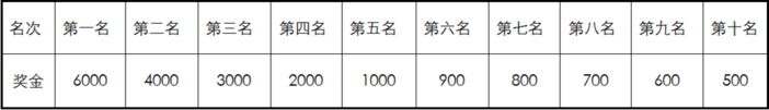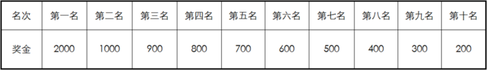 3.名次奖(均为人民币):男女第1至第10名运动员分别获奖金(见下表)和纪念奖牌、证书,男女前三名各颁发奖杯一座。