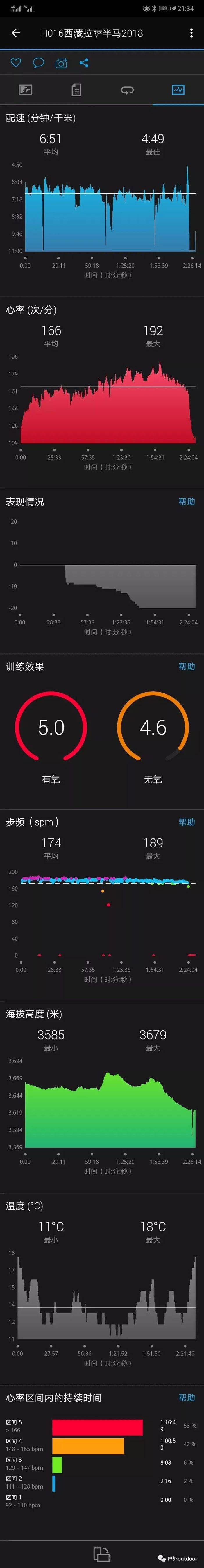 我强烈建议每个从内地去拉萨跑半马的人都准备一款能查看实时心率的手表。我是一个跑的慢的选手,半马PB155全马417平时跑步也基本是六到六分半的配速,我跑拉萨半程马拉松的策略是当做一次不追求速度的日常训练跑。
