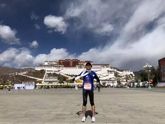 前一天晚上,我很认真地研究了线路,我以为早就该出现的布达拉宫仍然不见踪影。20公里点,仍然看不到,几乎到了20.5公里的时候,布达拉宫终于在左前方出现了,真的是高高在上,比我前两天看到的样子更加威武,也更加亲切,我眼泪都快掉下来了。20.6公里,转上北京中路,相当于拉萨的长安街。我知道自己距离3小时还有40多秒的亏空,开始加速。左右两侧都是加油助威的人群,我知道他们已经晒了很长时间了,我也希望快点冲刺,他们可以早些解散回家。