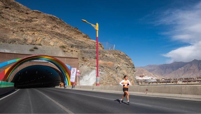 拉萨河南岸是两个折返路段,所以我一直能够看到对面的选手,我判断得出来,他们每一个人的配速都比我快,状态也都比我好。但还算不坏的消息是,我侧后方的志愿者在为我喊完加油之后,隔了一会儿,又喊起了加油声,显然,我后面还有人。