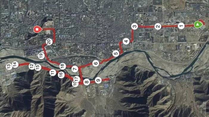 8分15秒的配速仍然保持着,直到18.5公里处的立交桥出现在我面前。上坡在所有赛事中当然都是不小的麻烦,而对于高原赛事而言,不仅上坡的麻烦要翻倍,更要命的是,上坡之后的下坡本应该是厚积薄发翻身作主的时刻,但出现在高原,更快的速度带来了更高的心率,所以下坡的借力在高原并没有那么明显,有时甚至也需要走。第19公里,我花了9分钟,这一下子就出现了40多秒钟的“赤字”。