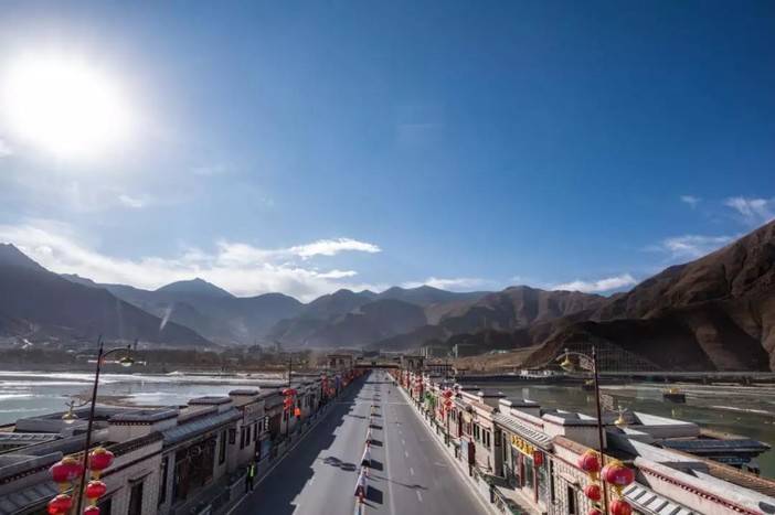 我跑在桥上,前面已经看不到人了,我没敢回头,听声音似乎也没有什么人。桥的名字是迎亲大桥,很漂亮,从侧面看,是廊桥的风格。迎亲的名字,当然是取自于松赞干布迎娶文成公主的故事,但桥是三年前建成的,与历史上的迎亲没什么关系。