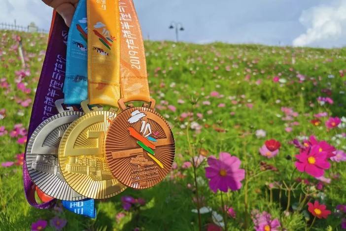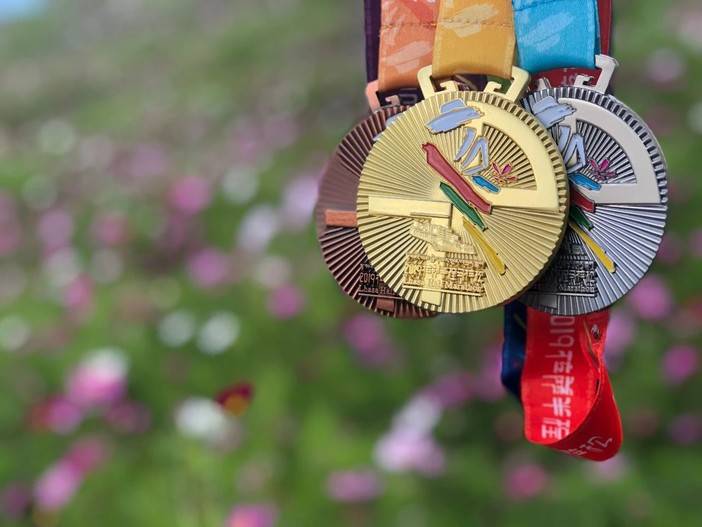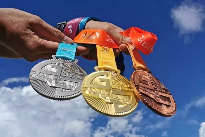 金、银、红铜三色奖牌分别为半程马拉松、10公里组、健康跑(5公里)三个组别的完赛奖牌。