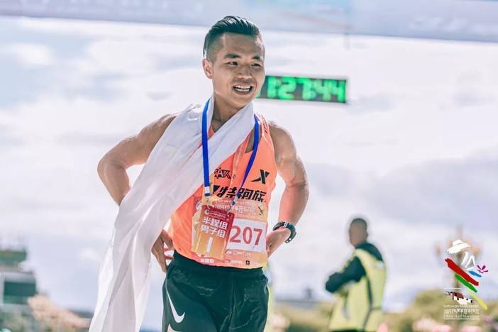 来自贵州遵义的令狐彻以1小时27分37秒获得男子半马冠军,第一次来到拉萨便拿到冠军,这是他赛前没有想到的。