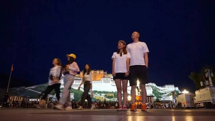 在终点布达拉宫广场前旋转、跳跃、起舞!