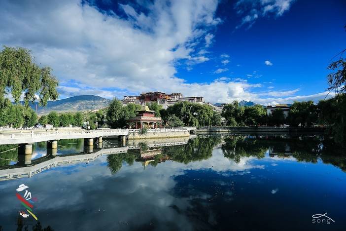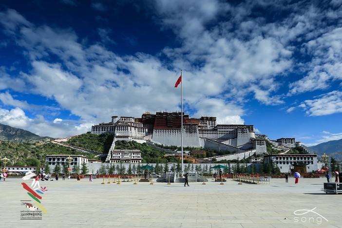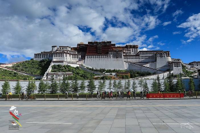 蓝天下的布达拉宫显得宏伟壮观,庄严肃穆