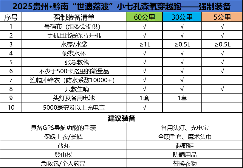 ①每一位参赛选手(同证件号码)仅能在2025小七孔森氧穿越跑报名唯一一个名额,如发现重复报名(不论是报名平台重复,还是参赛组别重复)组委会有权强制取消参赛选手的其他重复名额,直至仅保留唯一名额。