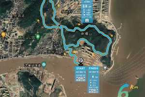 路线详情:沈家门鳌鱼广场(起点)→滨港路→滨港二路→荷外→普陀区气象局→烈士塔→大草坪→大岗→瑞丰家园→海天大道隧道→CP1友好公园→CP2南中山→CP3友好公园→海天大道隧道→瑞丰家园→大岗→广福寺→刺棚山→荷外→滨港二路→滨港路→沈家门鳌鱼广场(终点)