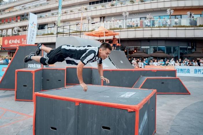 6月,2023贵州·黔南“飞跃咕噜”跑酷大会吸引了众多跑酷爱好者和专业选手参与。这是中国·黔南体育旅游欢乐季系列赛第一场以极限运动为主题的活动尝试,形式新颖,趣味性强,视觉冲击力大。
