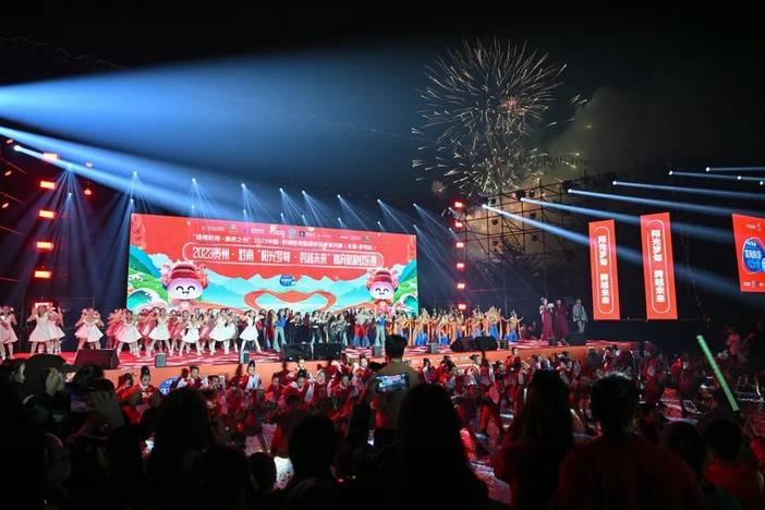 夜幕降临,2023贵州·黔南“畅享四季”体育旅游欢乐夜主题活动点燃了所有人的激情。精彩的歌舞表演、丰富的互动游戏、水幕烟花元素的加入让现场氛围达到高潮。所有观众都在欢乐的氛围中度过了一个个难忘的夜晚,进一步加深了对黔南地区体育旅游文化的了解和喜爱。